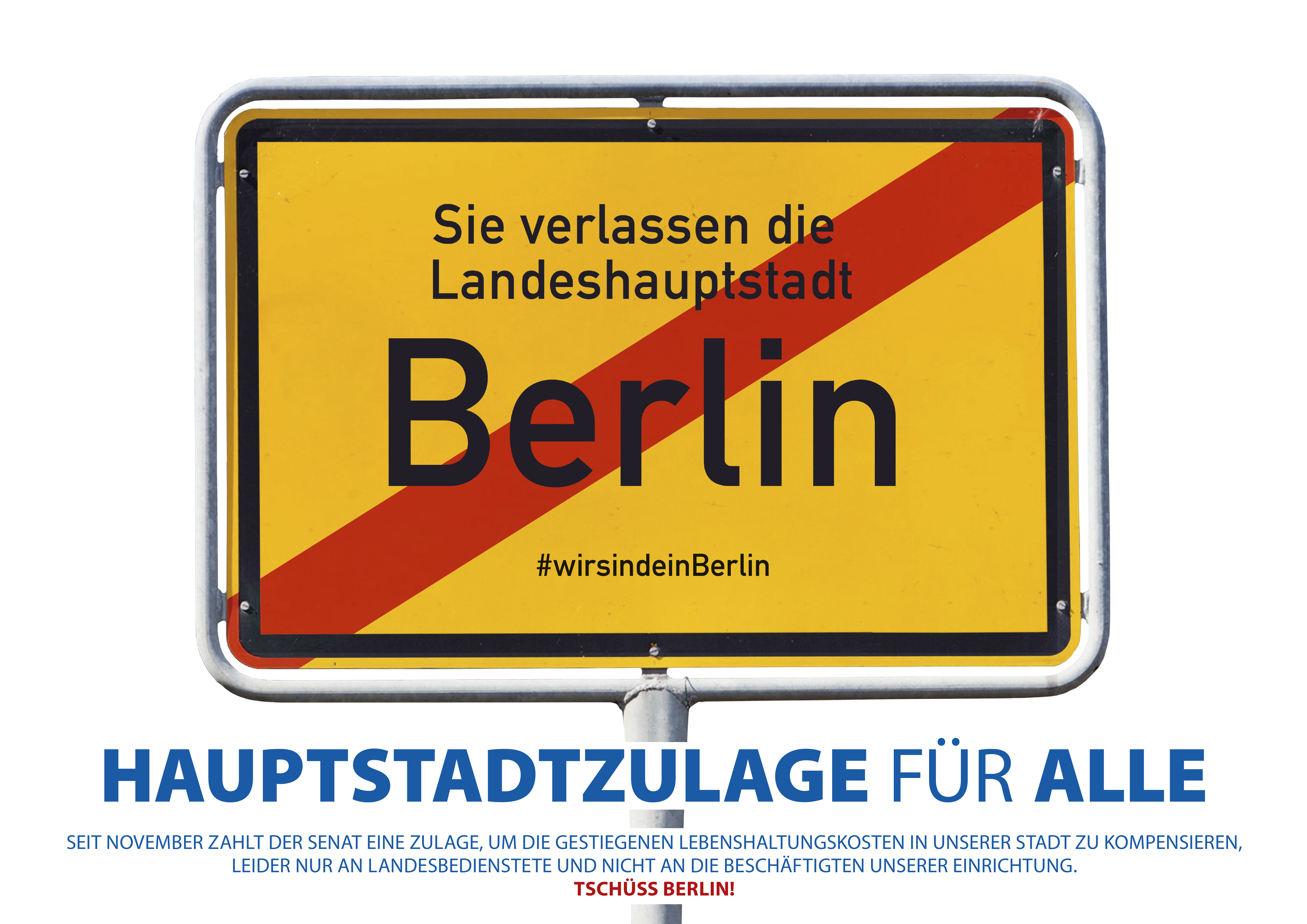 Der Paritätische Berlin startet eine kreative Plakat-Aktion.Unsere gemeinsame Kampagne: „Hauptstadtzulage für Alle“ geht weiter. Der Paritätische Wohlfahrtsverband Berlin wird nicht müde sich dieser Ungleichbehandlung durch die Berliner Landesregierung entgegen zustellen. Daher starten wir hiermit unsere gemeinsam geplante Plakat-Aktion. In Zusammenarbeit mit unseren Mitgliedsorganisationen KUBIBE.Berlin gGmbH und Fröbel e.V. haben wir ein Plakat entwickelt, dass wir Ihnen hiermit übersenden. Das Plakat kann problemlos bis auf ein Format von A1 gedruckt werden. Hinter dem Plakat steht die Idee, dieses von außen sichtbar in den Eingangsbereich(en) der Einrichtung(en) anzubringen. Damit zeigen Sie öffentlichkeitswirksam, welche Ungerechtigkeit durch die Auszahlung der außertariflichen Zahlung der Hauptstadtzulage allein für Bedienstete des Landes Berlin entstanden ist. Je mehr Plakate in unserer Stadt durch Sie aufgehängt werden, umso mehr machen wir sichtbar wie viele Mitarbeiterinnen und Mitarbeiter bei freien und gemeinnützigen Trägern von der Hauptstadtzulage ausgeschlossen werden. Die Plakat-Aktion wollen wir durch Fotos auf den Social Media Kanälen begleiten. Daher wäre es hilfreich, wenn Sie uns Fotos zukommen lassen. Auf dem Foto sollte möglichst der Name der Einrichtung und das Plakat erkennbar sein. Die Fotos bezeichnen Sie bitte wie folgt: Name Träger_Name Einrichtung_Datum. Das ermöglicht uns eine bessere Zuordnung. Hinweise für die Fotos: wenn möglich im Querformat und bitte eine gute Auflösung wählen. Sofern Personen auf dem Foto abgebildet sind, ist eine entsprechende Einverständniserklärung dieser Personen einzuholen. Die Einverständniserklärung ist bitte für eine bessere Zuordnung wie folgt zu bezeichnen: Name Träger_Name Einrichtung_Datum_Name Person. Die Fotos und Einverständniserklärungen können Sie fortlaufend an: presse(at)paritaet-berlin.de mit dem Betreff: Foto Plakat Hauptstadtzulage geschickt werden. Aus den Fotos, die bis Mittwoch, den 16.12. eingehen, nutzen wir eine Auswahl für den Auftakt der sich anschließenden Online-Petition im Januar. |