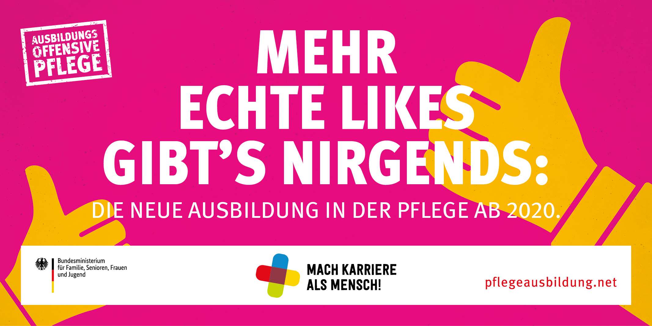 Zum Start der Informations- und Öffentlichkeitskampagne „Mach Karriere als Mensch!“ des BMFSFJ am 22. Oktober 2019 wurde der nebenstehende Kampagneleitfaden veröffentlicht. Er enthält Anregungen, die für die Kommunikation des Kampagnenauftakts genutzt werden können. Darüber hinaus finden sich dort weitere Informationen rund um die Kampagne, eine Auflistung der Materialen des Webshops und Hinweise, wie diese ab dem 22.10.2019 über die Homepage pflegeausbildung.net bestellt werden können.